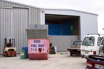 この奥でACボートが作られています。私たちが写真を撮ることができるのはここまででした。次回のアメリカスカップにはどんな船型のボートが現れるでしょうか。 |
